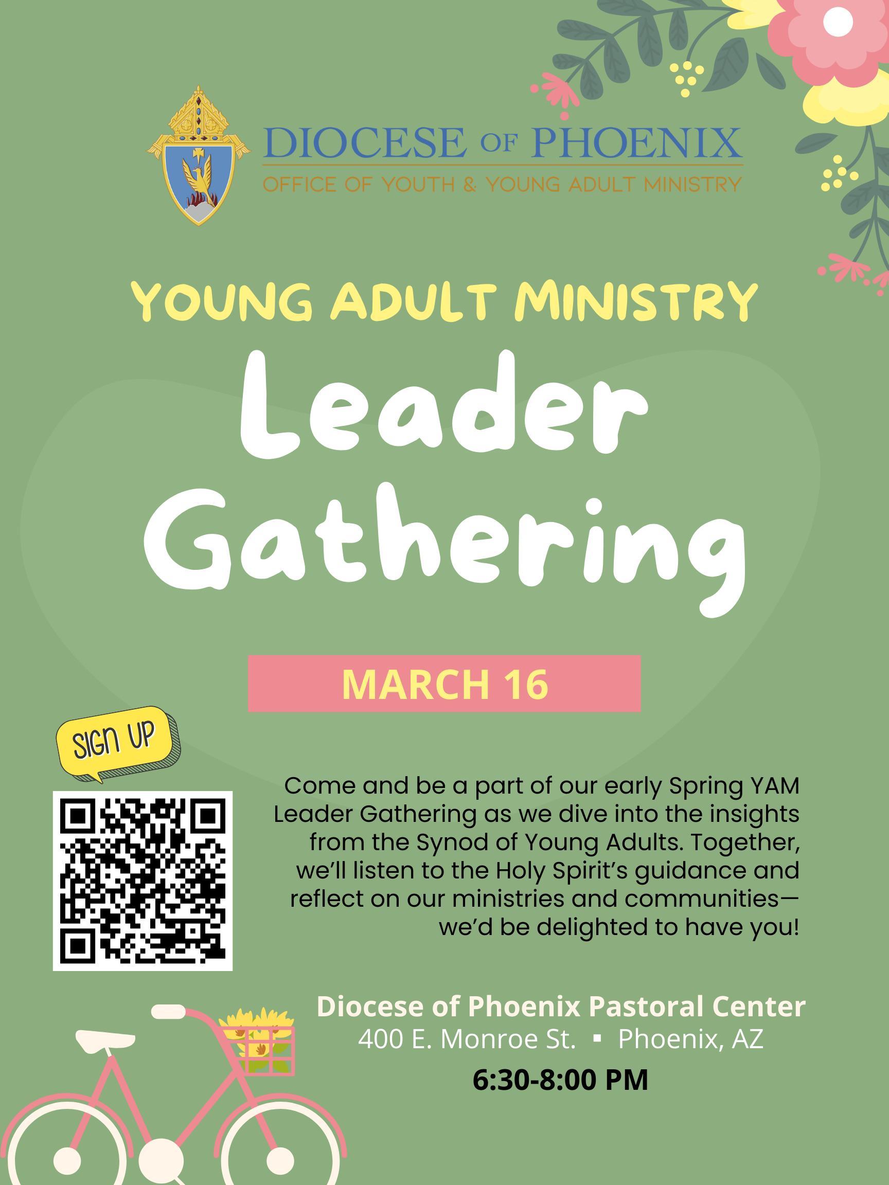 Diocese of Phoenix Pastoral Center Young Adult Ministry Leader Gathering 400 E. Monroe St. | Phoenix, AZ 6:30 – 8 PM